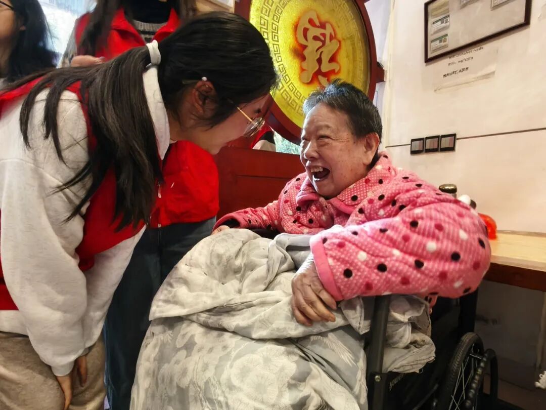 志愿者们怀着感恩之心,温柔对待每一位老人和孩子。他们放缓语速、放柔语调,用耐心驱散初见的拘谨。志愿者与老人、孩子结成“一对一”小组后,便一起闲话家常。志愿者们或是握着老人的手,静静倾听他们讲述岁月里的旧时光;或是陪着孩子,轻声询问他们的小小心愿。指尖的温度、眼底的笑意,悄悄消融了彼此的疏离,让感恩的心意在每个人的心中缓缓流淌。