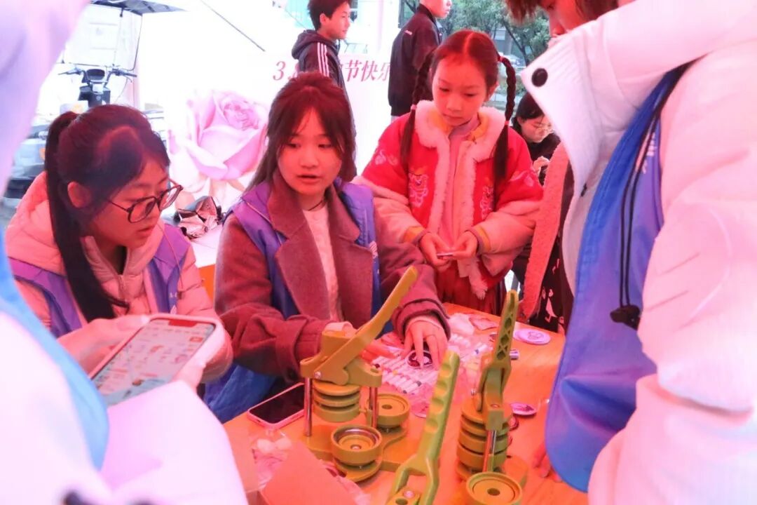 “Invest in women,accelerate progress.”展板上字母盘结交错,一句句祝福生长出爱的枝桠。英语协会将祝福感言融入英语,殷切寄予全体妇女;沙包掷地有声,爱心投掷游戏趣味盎然;法律协会成员齐齐上阵,讲解声此起彼伏,科普女性权益知识;DIY专属勋章别具匠心,志愿者协会熏陶巾帼文化,协同进行手工创作,精品制章琳琅满目,夺人眼球。同学们纷纷参与进活动中,时而沉浸参与互动游戏,时而收到精美奖品,现场欢声笑语不断。