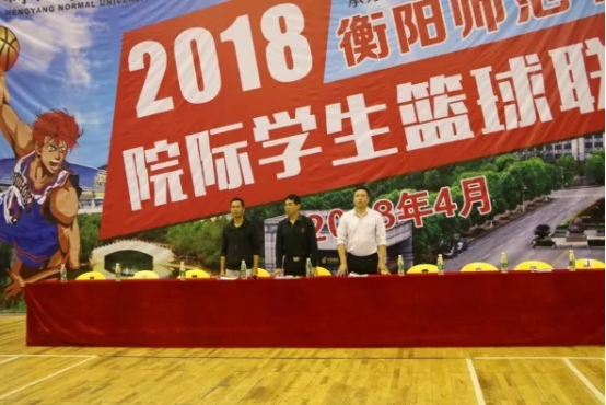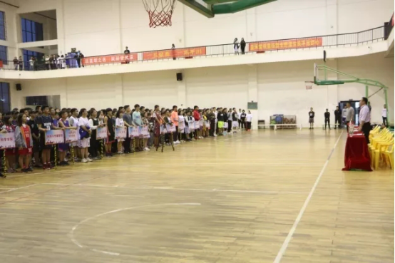 2018年4月9日,晚上七点,我校2018年上学期篮球比赛开幕式在篮球馆顺利举办。体育科学学院党总支书记饶平教授,体育科学学院副院长周松青教授,体育科学学院副院长江亮,裁判长陈鑫教授以及各学院参加篮球联赛的球员参加了本次开幕式。