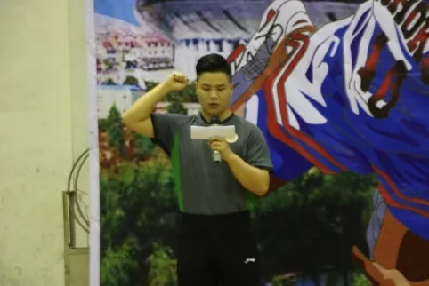 体育科学学院副院长江亮慷慨激昂地鼓励球员说:“每个球员都饱含对篮球的热爱,应当为这一份热爱去拼搏,一显身手,赛出水平,赛出风格,展现我辈英雄本色。”并且预祝我校2018年学生篮球联赛成功举办。