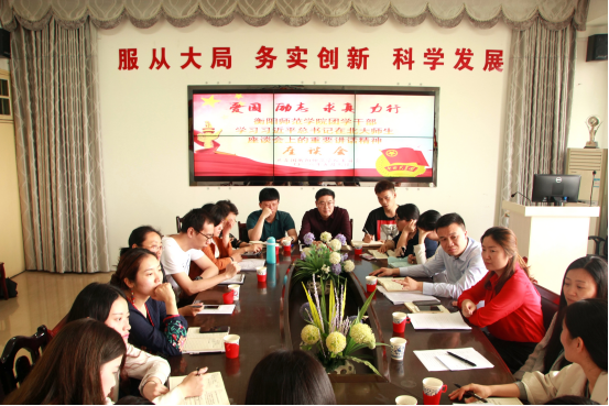 5月7日,我校举办了团学干部学习习近平总书记在北大师生座谈会上重要讲话精神座谈会。校团委书记曹鑫、校团委副书记董俊、各学院团委书记以及青年学生代表等参加了此次的座谈会。