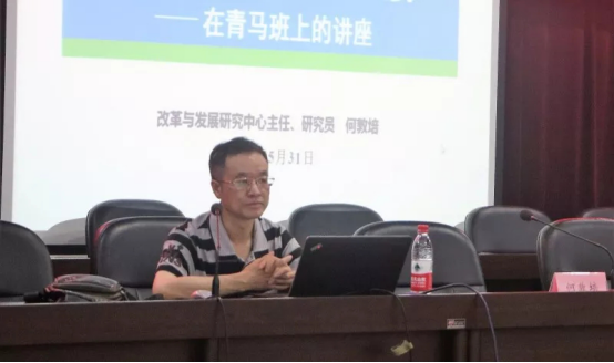 2018年5月31日19:00,我校第六期青年马克思主义者培养班课程第三讲在行政楼六楼会议室举行。本期课程由改革与发展研究中心主任、研究员何敦培主讲。