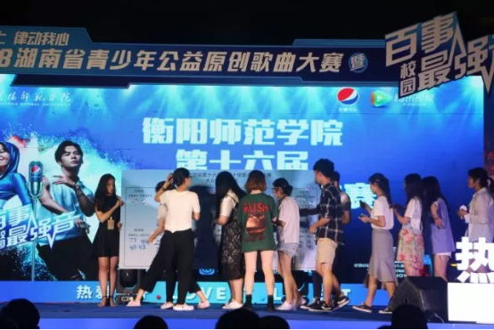 5月30晚19:00,yl8cc永利官网校园十佳歌手暨百事最强音总决赛于东校区篮球馆举行。衡阳市博文教育行政人事总监任丽蓉;音乐学院副院长、衡阳市音乐家协会副主席、声乐艺术委员会会长潘晓军;yl8cc永利官网团委副书记董俊;衡阳市音乐家协会声乐艺术委员会副会长王爱红;艺术实践部主任崔少博担任本次比赛的评委。参加本次比赛的嘉宾有学生工作处副处长何芳,创新创业学院副院长魏文生。