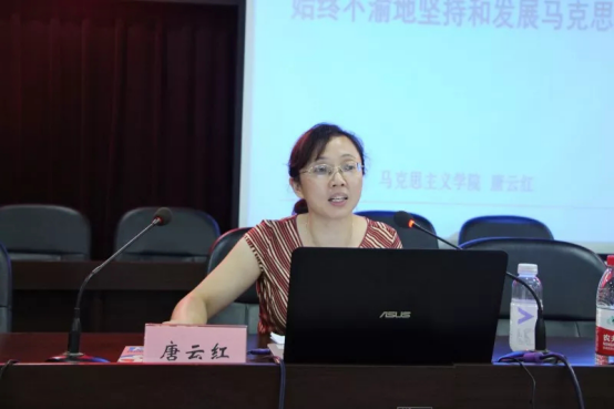 随后唐老师还介绍概括了习近平总书记在纪念马克思诞辰200周年大会上重要讲话的主要内容:一、以“三个一生”高度评价了马克思的人生历程;二、以“四个理论”概括了马克思主义的鲜明特征;三、以“三个飞跃”总结了马克思主义在中国创造的奇迹;四、以“九个思想”准确概括了马克思主义理论的要义,指明如何继续学习和实践马克思主义。
