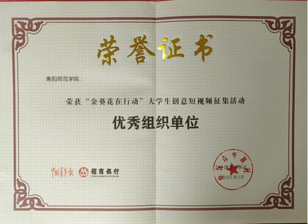 近日,中国青年网公布了2020年“金葵花在行动”大学生创意短视频征集活动的评审结果,我校荣获“优秀组织单位”奖。