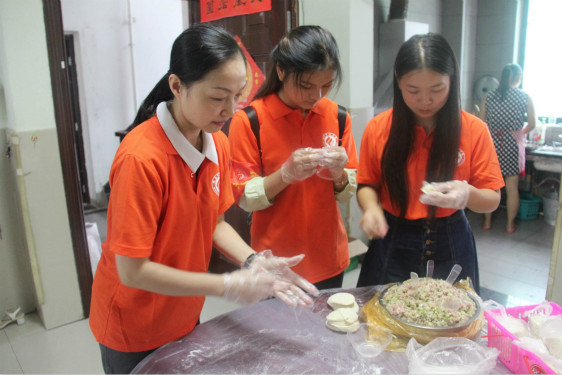 这里的孩子们见到志愿者们的到来,非常高兴。志愿者们将提前准备的金粉画、剪纸等分给大家,教孩子们折千纸鹤,帮女生编头发,陪他们画画、下象棋、玩游戏,并给孩子们送上中秋节的礼物。与此同时,法学院谢琳副书记和钟佩玲老师带着其他几名志愿者们在一旁给孩子们包饺子。志愿者们带去的那份细致的关怀温暖了孩子们的心,孩子们灿烂的笑容也感染着志愿者们,春晖之家呈现出一副温馨的画面。