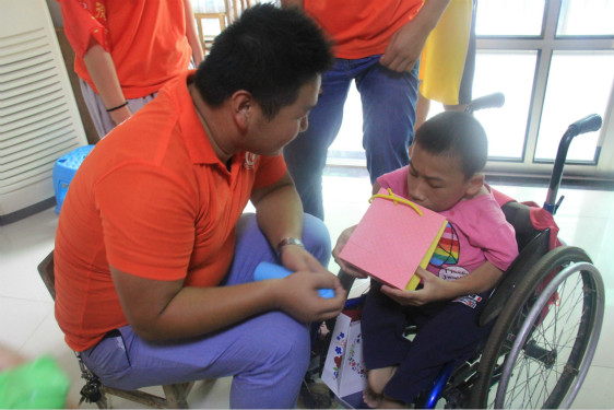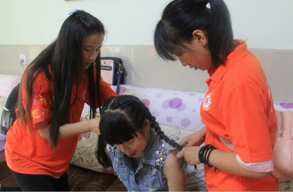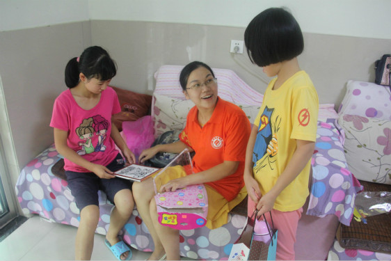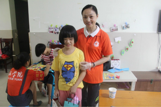 春晖之家的生活老师黄阿姨介绍说“这里的孩子其实很自卑,他们需要社会的关怀,很感谢你们在这个特别的日子给他们送来了温暖。希望你们以后还能经常过来教孩子们学习。”