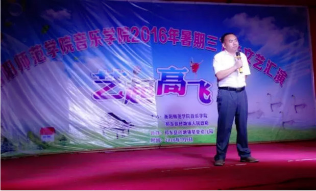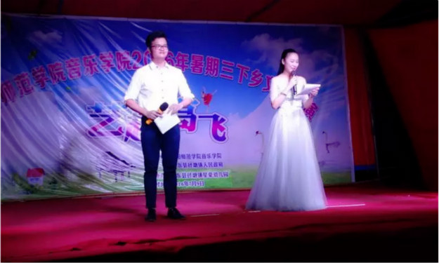 整场晚会井然有序、高潮不断,节目以基层群众的文化需求为导向、贴近老百姓的生活,得到了当地政府和群众的高度认可和赞扬。为了筹备这台晚会,音乐学院前期做了周密而细致的部署和精心的安排,包括团队的组建、人员的分工、节目的排练、舞台的搭建等。音乐学院“艺起高飞”三下乡服务团队将在祁东县砖塘镇开展为期五天的音乐支教、团体辅导、文艺汇演、留守儿童关爱行动、中小学艺术教育调研等社会实践活动。旨在丰富基层群众的文化生活,促进农村精神文明建设,引领大学生养成吃苦耐劳的品质,坚定为实现中华民族伟大复兴的中国梦努力奋斗的理想信念。