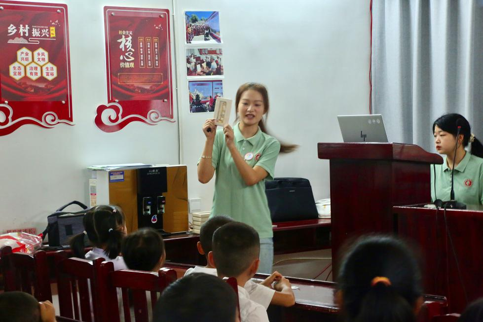 为进一步深化民族团结教育、铸牢中华民族共同体意识,8月21日,马克思主义学院“红苗星火”实践团前往湖南省邵阳市城步苗族自治县汀坪乡蓬瀛村村委会党员活动室,为当地儿童开展“共育石榴籽,同筑中国梦”——中华民族共同体意识主题宣讲活动,以青春实践推动民族团结教育在基层落地。
