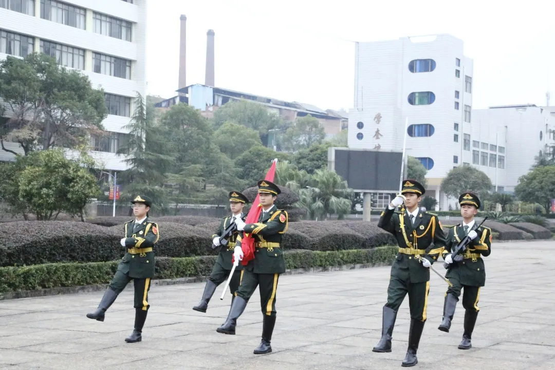 “前进!”指挥官的口令掷地有声,响彻广场。国旗护卫队队员目光坚毅、步伐铿锵,踏着整齐划一的正步,向升旗台迈进。擎旗手肩头所扛的不仅是一面五星红旗,更是薪火相传的使命与矢志不渝的信仰。墨绿色军装承载着他们对这份责任的无声誓言,他们将这份责任内化于心、外化于行,最终,将这份精神力量与理想信念传递给在场的每一位学生。