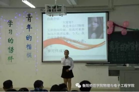 2017年10月27日晚7:00,由物理与电子工程学院主办、教师梦协会承办的以“与信仰对话,青年的楷模,学习的榜样”为主题的演讲比赛复赛在理科楼南112隆重举行。本次比赛由党支副书记张先学,辅导员李林奇、田赛男、赵鹏,团总支学生分会以及教师梦协会主要干事担任评委。