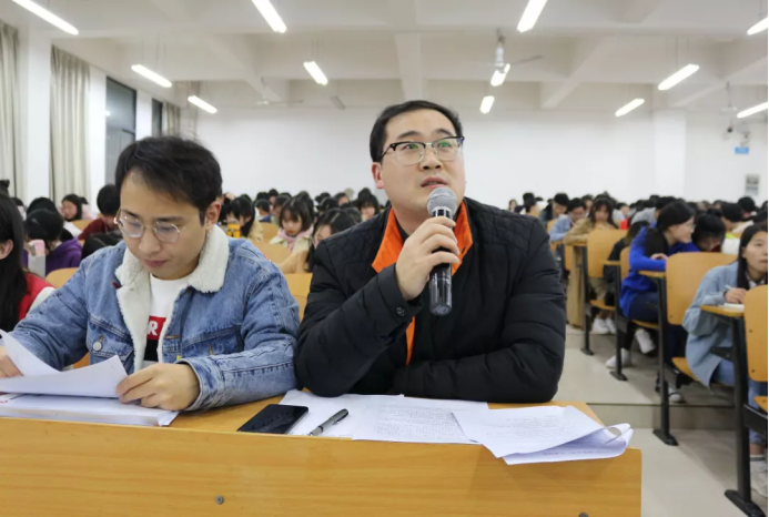 2019年3月14日晚,物理与电子工程学院于理科楼南112召开2018年度"五四红旗团支部"答辩会。物理与电子工程学院团委书记李林奇、辅导员赵鹏、团委副书记周烨出席并担任本次会议评委,17-18级学生积极参加了本次活动。