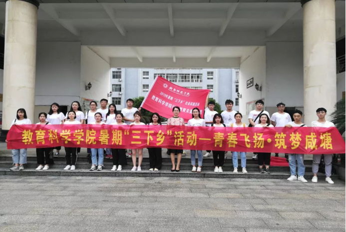 9月1日下午,教育科学学院行知教育关爱服务团志愿者们在文综楼举行三下乡出征仪式。分团委书记曹喜燕出席了出征仪式,随后与行知教育关爱服务团志愿者们一起前往衡阳市衡南县花江村咸塘中学进行三下乡志愿服务活动。