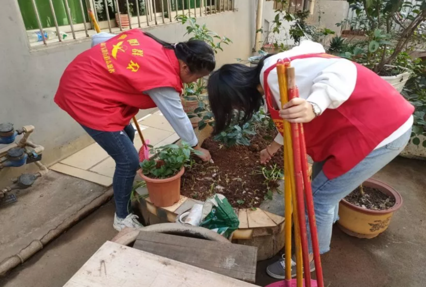 在每周的周二和周五,青年志愿者服务联盟志愿者来到了建国里社区开展志愿活动。穿着红马甲的志愿者们分工合作,在社区花坛周围清理果皮纸屑,每一处卫生死角都打扫得干干净净。