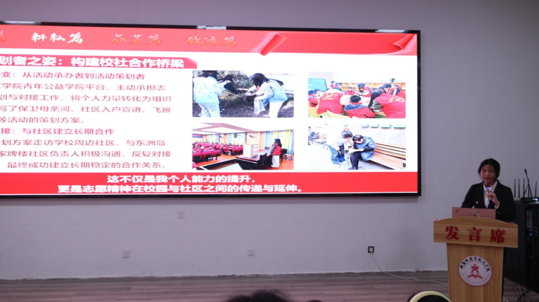 随后,学生代表方雨淳、康俊宇依次登台,分享了自己投身志愿服务的亲身经历与成长感悟。从校园文明劝导到乡村助学支教,从社区敬老助老到特殊群体关爱,他们以青年学子的热忱与担当,在躬身实践中践行雷锋精神,让现场观众看到了志愿精神在青年一代中的传承与延续。